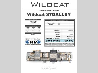 Stock #FR-ORD-1945-FBourbon, MOSt. Louis' Wildcat Dealer! • Front Bunk Suite • 2 Full Baths • Special, Introductory PricingStock #FR-ORD-1945-FBourbon, MOSt. Louis' Wildcat Dealer! • Front Bunk Suite • 2 Full Baths • Special, Introductory Pricing