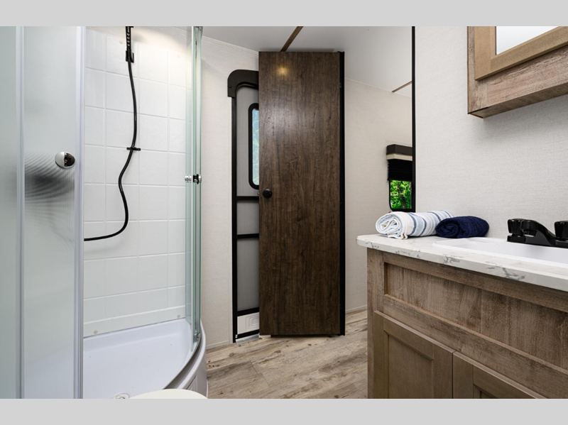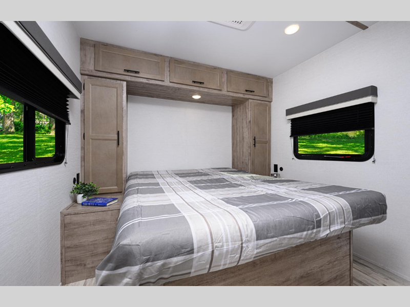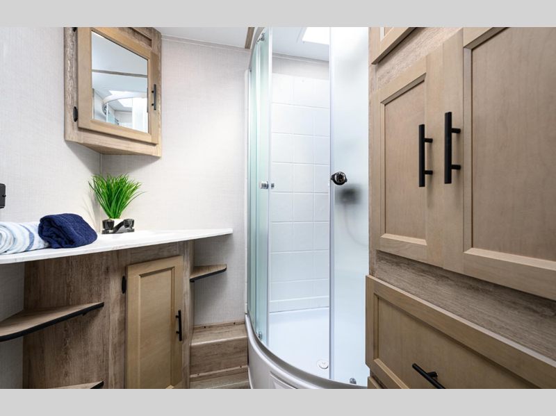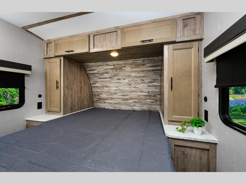 These models are considered to have the ideal combination of value and luxury for those looking to have high-value, low-priced family-oriented camping excursions. The handcrafted cabinetry and extensive storage space throughout will have you feeling right at home where ever you go, and the larger slide windows will bring in more natural lighting. These models feature upgraded graphics, a convenient tankless water heater, upgraded bath and shower faucets, and many more comforts!