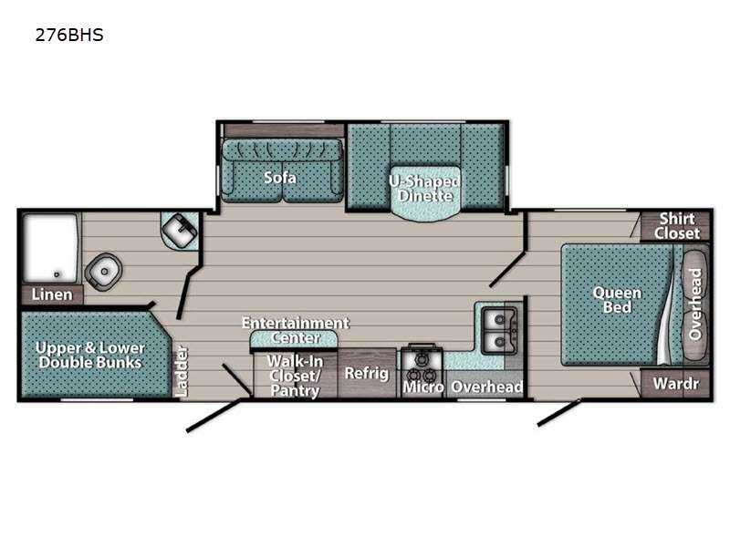 Sleeps 9 Slides 2 Length 33 ft Ext Width 8 ft Ext Height 10 ft 9 in Int Height 6 ft 8 in Hitch Weight 910 lbs Dry Weight 6660 lbs Cargo Capacity 1820 lbs Fresh Water Capacity 35 gals Grey Water Capacity 67 gals Black Water Capacity 33 gals Furnace BTU 30000 btu Number Of Bunks 2 Available Beds Queen Refrigerator Type 12V Refrigerator Size 10.7 cu ft Cooktop Burners 3 Number of Awnings 1 LP Tank Capacity 20 lbs Water Heater Type Tankless AC BTU 13500 btu Awning Info Electric with LED Lights Axle Count 2 Number of LP Tanks 2 Shower Type Standard Electrical Service 30 amp Similar Floorplans