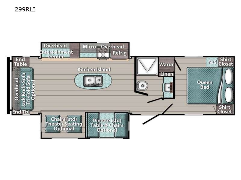 - Power Slide Out or Double Slide Out (see floor plans for specifics)