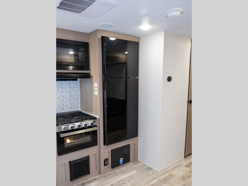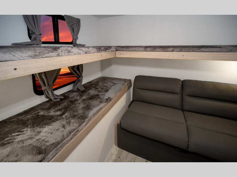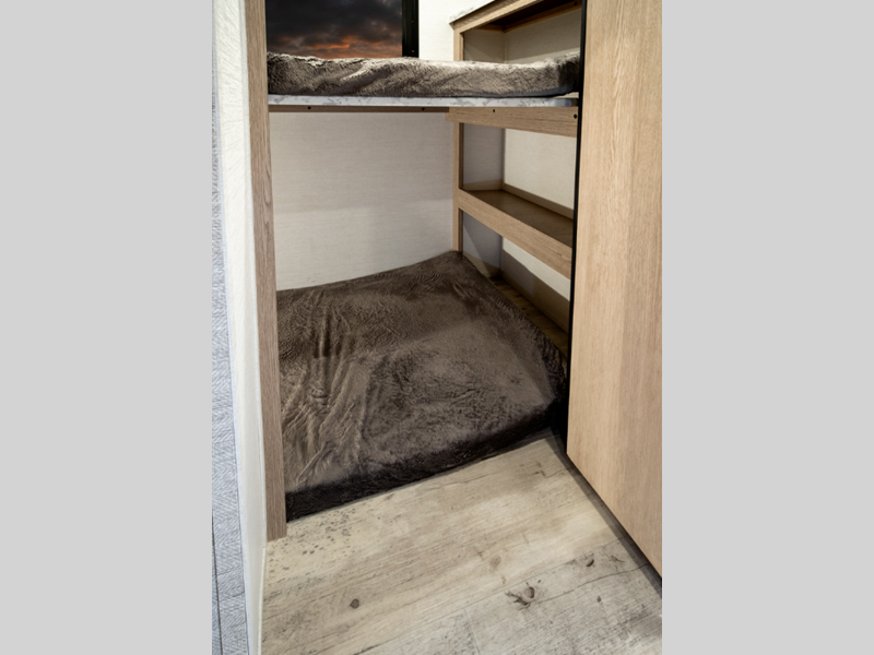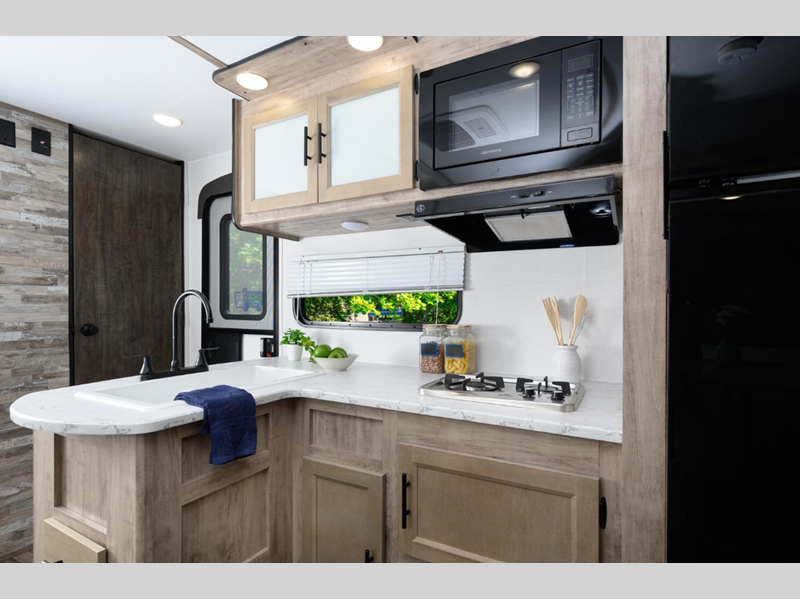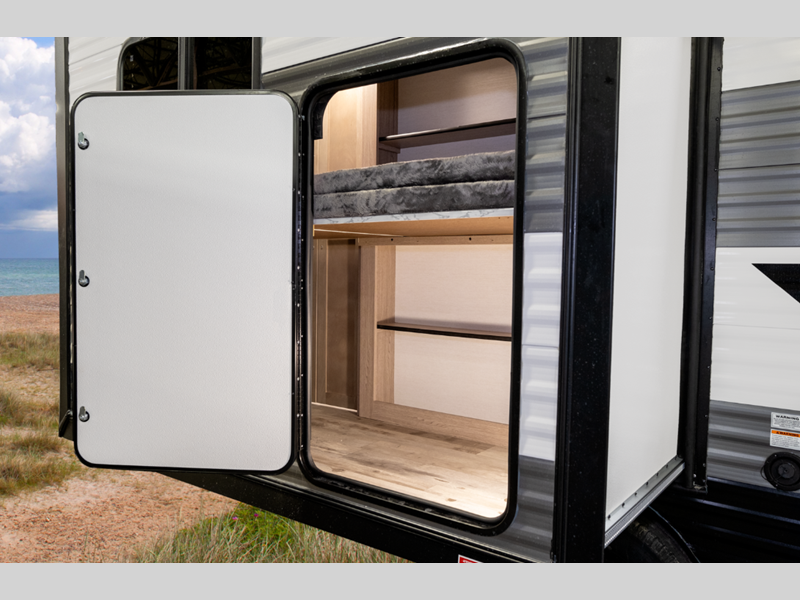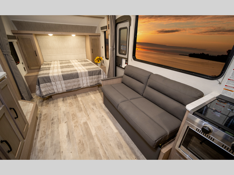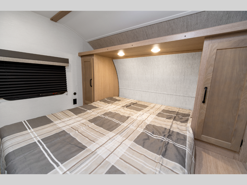 You'll instantly feel at home when you step inside to find craft-made cabinetry, high-performance vinyl flooring throughout, and a cozy queen bed. The 16,000 BTU gas furnace and fiberglass insulation will allow you to camp year around, and the 13,500 BTU A/C will be perfect for summer. . There is a pass-through storage on most models, plus a tankless water heater and many more conveniences.