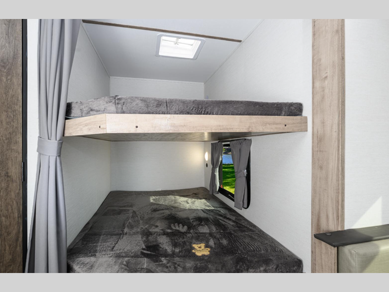 Sleeps 7 Slides 1 Length 33 ft 11 in Ext Width 8 ft Ext Height 11 ft 1 in Int Height 6 ft 8 in Hitch Weight 920 lbs Dry Weight 6320 lbs Cargo Capacity 1600 lbs Fresh Water Capacity 35 gals Grey Water Capacity 33 gals Black Water Capacity 34 gals Tire Size 14" Furnace BTU 20000 btu Number Of Bunks 2 Available Beds Queen Refrigerator Type Everchill Refrigerator Size 10.7 cu ft Cooktop Burners 3 Number of Awnings 1 LP Tank Capacity 20 Water Heater Type Tankless AC BTU 13500 btu Awning Info Electric with LED Light Axle Count 2 Number of LP Tanks 2 Shower Type Standard Electrical Service 30 amp Similar Floorplans
