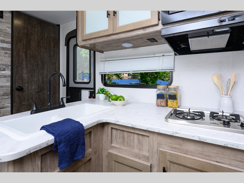 Sleeps 3 Slides 1 Length 22 ft 11 in Ext Width 8 ft Ext Height 11 ft 2 in Int Height 6 ft 8 in Hitch Weight 400 lbs Dry Weight 4630 lbs Cargo Capacity 3027 lbs Fresh Water Capacity 36 gals Grey Water Capacity 29 gals Black Water Capacity 29 gals Tire Size 14" Furnace BTU 20000 btu Available Beds Queen Refrigerator Type Everchill Refrigerator Size 10.7 cu ft Cooktop Burners 3 Number of Awnings 1 LP Tank Capacity 20 Water Heater Type Tankless AC BTU 13500 btu Awning Info Electric with LED Light Axle Count 2 Number of LP Tanks 2 Shower Type Radius Electrical Service 30 amp Similar Floorplans