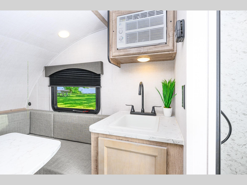 Sleeps 2 Length 15 ft 6 in Ext Width 6 ft 9 in Ext Height 9 ft 5 in Int Height 6 ft Hitch Weight 320 lbs Dry Weight 2120 lbs Cargo Capacity 1700 lbs Fresh Water Capacity 24 gals Grey Water Capacity 18 gals Black Water Capacity 8.5 gals Furnace BTU 19000 btu Refrigerator Type Gas/Electric Cooktop Burners 2 LP Tank Capacity 20 lbs Water Heater Capacity 6 gal Water Heater Type DSI Gas AC BTU 5000 btu Axle Count 1 Number of LP Tanks 1 Shower Type Wet/Bath Shower Solar Wattage 100 watts Similar Floorplans