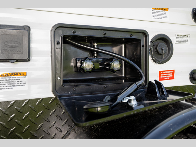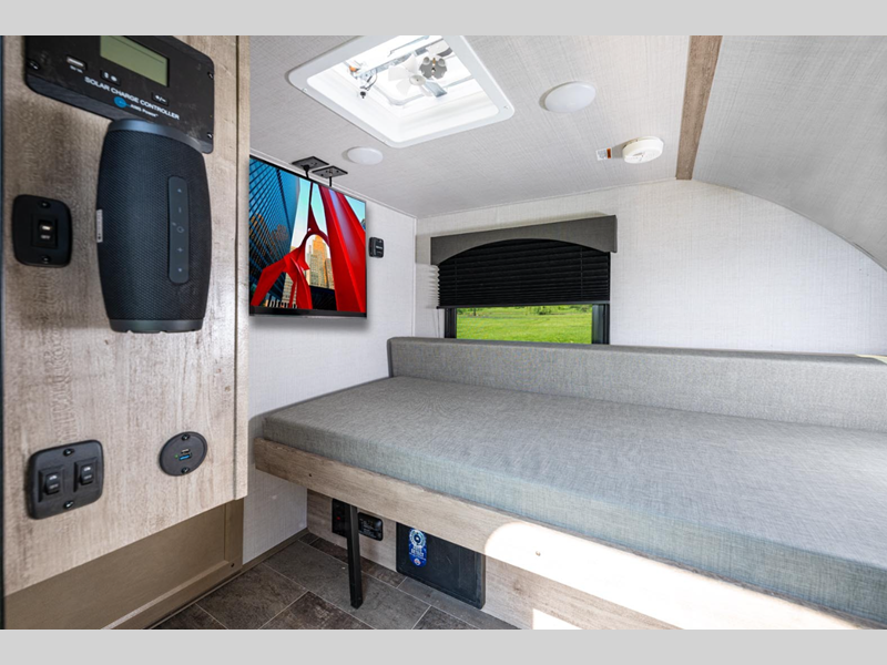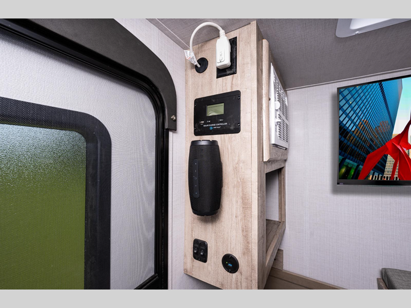 The 100W roof-mount solar panel with controller lets you go off the grid for a boondocking camping experience. You can navigate through rougher terrains with the all-terrain radial tires, and the front and side diamond plate rock guard will protect the exterior. Stay connected with the multiple 110V and USB power outlets, and listen to your favorite tunes everywhere you go with the Bluetooth portable speaker and docking station.