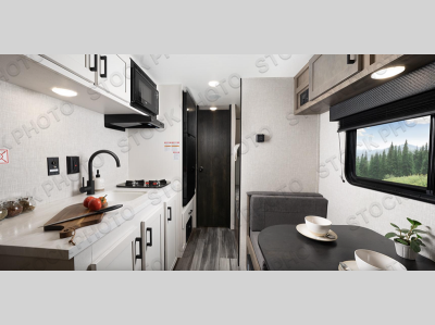 Each model is constructed with a Magnum Truss roof system, which is one of the strongest roofs in the industry, capable of withstanding 50% more weight. The axle(s) with electric, self-adjusting brakes and easy-lube hubs will make towing easier than ever, and the stabilizer jacks will give you peace of mind as you set up camp. Inside, you'll love the residential-style kitchen countertops and vinyl flooring throughout, plus there is an on-demand tankless water heater on board for hot water when you need it!