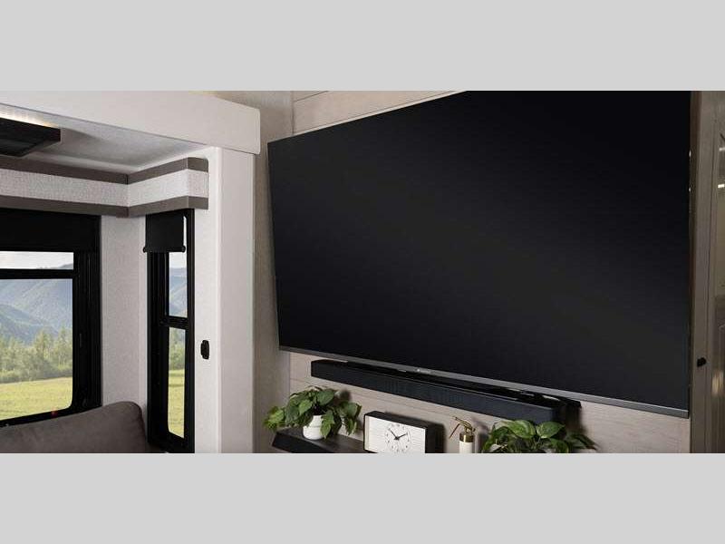 Sleeps 6 Slides 5 Length 44 ft 7 in Ext Width 8 ft 6 in Ext Height 13 ft 3 in Exterior Color Midnight Charcoal, Midnight Gold, Silver Metallic Hitch Weight 3095 lbs GVWR 18000 lbs Dry Weight 15870 lbs Cargo Capacity 2930 lbs Furnace BTU 40000 btu Available Beds King Refrigerator Type GE Residential Refrigerator Size 21 cu ft Cooktop Burners 4 Number of Awnings 2 LP Tank Capacity 40 lbs. Water Heater Type On Demand Tankless AC BTU 30000 btu TV Info LR 65" 4K Smart LED HDTV, KT 40" TV, BR 32" 4K Smart LED TV, EXT 40" 4K Smart LED TV Awning Info 14' & 14' Electric with multi-color LED Lights Axle Count 2 Number of LP Tanks 3 Shower Type Shower w/Seat Electrical Service 50 amp Solar Wattage 400 watts Similar Floorplans