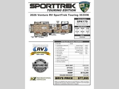 Bourbon RV works hard to ensure the accuracy of all its listings, however, we are not responsible for any misprints, typos, or errors found in our website pages. Manufacturer provided pictures, specifications and features are included on our website and may not be a 100% accurate representation of a specific unit. Our inventory changes rapidly and the inventory shown may be only a partial listing of our entire inventory. Please contact us at 573-732-5100 for current availability.